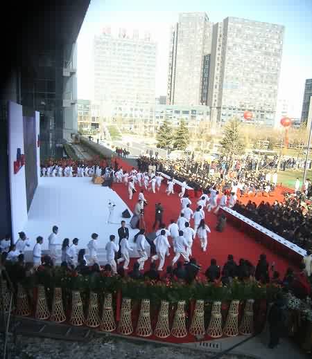 在現(xiàn)場可以看到,一個(gè)巨大的幕布從大廈西側(cè)的頂樓垂下,上面印著百度數(shù)千名員工照片組成的笑臉,使過往的行人都感受到慶典儀式的喜慶氛圍。儀式上,300名百度員工及百度愛好者們共同出演“百人秀”,通過跑動(dòng)在大廈前的廣場上排出一個(gè)個(gè)活潑生動(dòng)的慶典圖案,更將整個(gè)活動(dòng)的氣氛推向高潮。最后,李彥宏和員工及網(wǎng)友代表一起,在大廈前種下一棵象征基業(yè)長青的雪松,培上百度各地網(wǎng)友取來的五岳之土,并以長江、黃河之水澆灌。