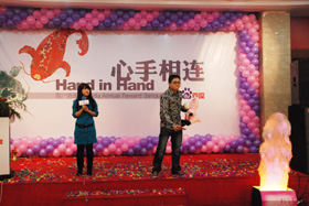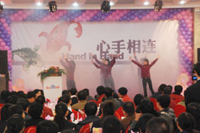 陽光絢爛,暖暖的冬風輕拍著臉蛋,心情格外的爽快。2008年12月20日,“心手相連”百度客戶答謝會在鹽城山青水秀綠色生態(tài)美食園隆重舉行,200多人的會場坐無虛席!此次會議可謂“眾星云集”,泰州名主持小柏擔任此次會議的主持,我們也有幸邀請到百度客服經(jīng)理張鵬擔任此次會議的主講。午宴開始前百度渠道部經(jīng)理晟皞的祝酒詞,百度市場部經(jīng)理李方巖的“友情客串”,為此會議的舉辦增色不少。