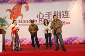 我們的愿望心手相連,客服與客戶正開心地留影
