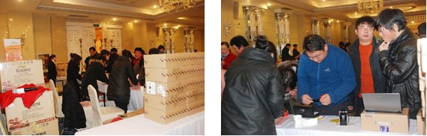 下午兩時(shí)許,企業(yè)家們陸續(xù)到來,簽到、簽名、進(jìn)入會(huì)場。會(huì)前,企業(yè)家們對禮品兌換區(qū)產(chǎn)生了極強(qiáng)的興趣,大家顧不上入座就紛紛涌向咨詢臺詢問促銷方案,續(xù)費(fèi)、領(lǐng)禮品、兌積分,忙個(gè)不亦樂乎。