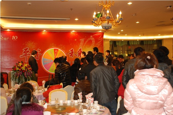 2011年12月16日,天氣比較寒冷,但是這并沒有擋住客戶熱情的腳步。在全體同仁的精心準(zhǔn)備下,“平等成就 未來—百度推廣十周年客戶答謝會”鹽城站會議隆慶舉行。福地皇宮大酒店福地廳其樂融融、客戶高朋滿座,我們以精彩紛呈的節(jié)目,一輪又一輪的新穎抽獎形式,吸引了眾多客戶的參與。