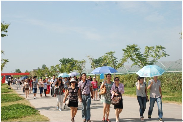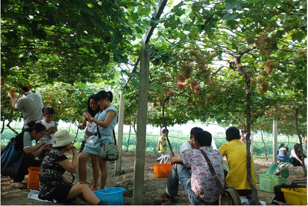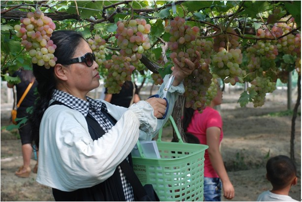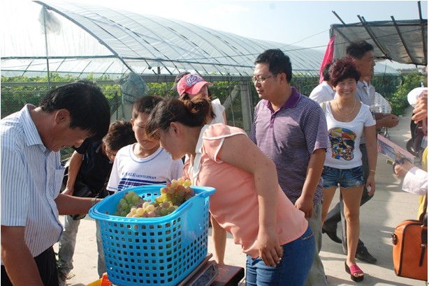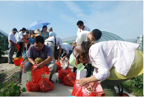 午宴之后,客戶與員工乘坐營(yíng)銷體驗(yàn)車和大巴來(lái)到仰徐農(nóng)業(yè)科技有限公司的葡萄園,收獲這次的豐收之旅。