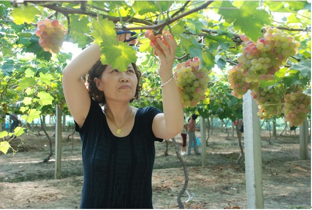 中小企業(yè)家們?cè)谄咸逊N植大棚的簇?fù)硐?,留下了美麗身?br/>