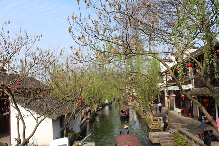 集合而歸,靠著椅背才覺(jué)得有點(diǎn)疲憊。車(chē)沿著林蔭小路,讓我們有機(jī)會(huì)在路途中還能親近那一抹綠。下一站是大家一直期待的水鄉(xiāng)周莊,短暫的車(chē)程之后,我們的大隊(duì)伍浩浩蕩蕩的順利了抵達(dá)周莊……